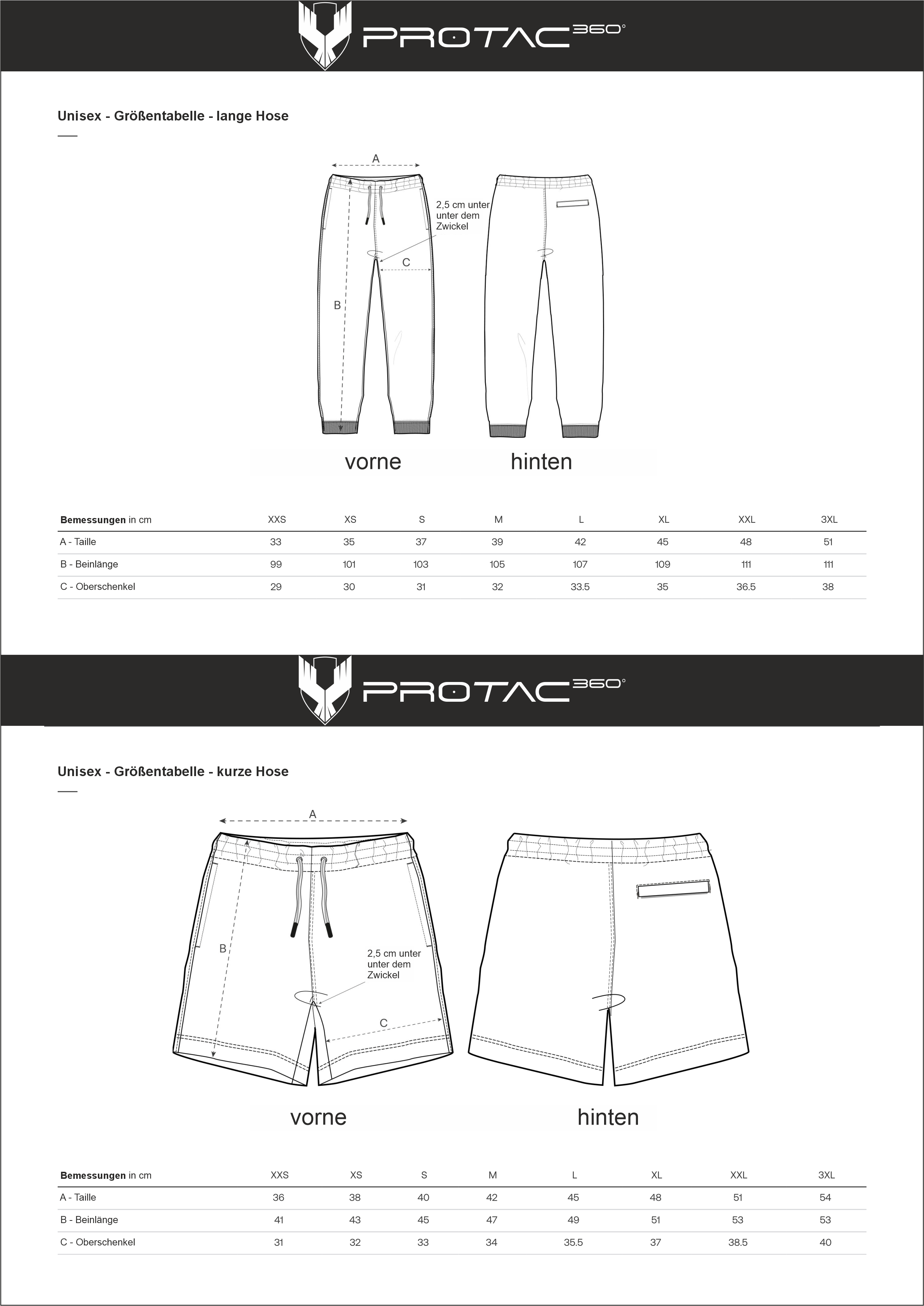protac360-grentabelle-unisex-langehose-kurzehose